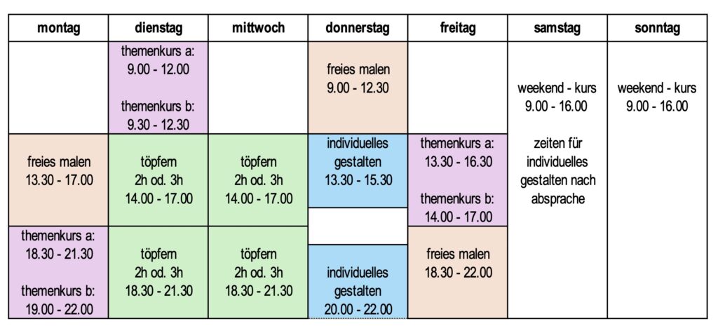 bitte reserviere deine mal- oder töpferstunden vorher telefonisch, per whatsapp/sms oder email.