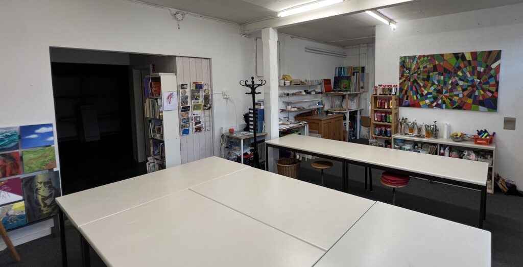 individuelle anreise, parkplätze (gratis) hat es beim atelier oder im cuenin areal.
